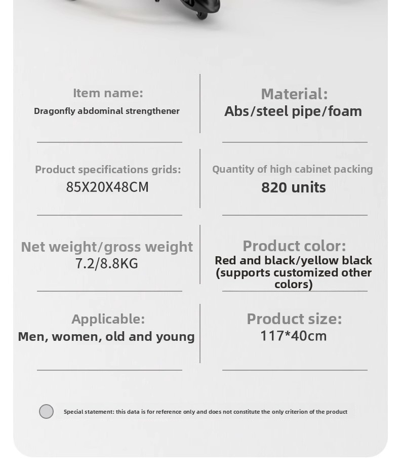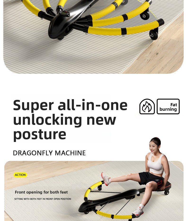 Our product, also known as the Dragonfly Machine, is a multi-functional abdominal and arm exercise device.Unlike ordinary ab trainers, this machine offers a comprehensive workout experience.It functions as a roll-up abs machine, allowing you to perform efficient crunches and roll-ups for a complete abdominal workout.As a multifunctional ab machine, it provides multiple exercise options to target different muscle groups.